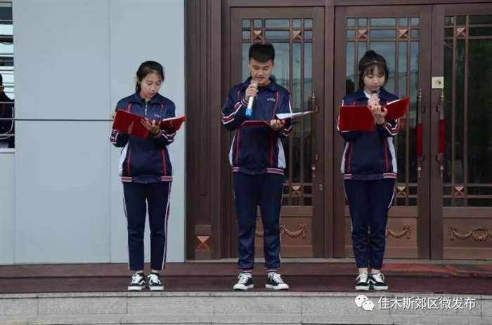 伴随着雄壮《义勇军进行曲》,五星红旗冉冉升起,同学们用洪亮的国歌向国旗致敬,向辛勤培育自己的母校致敬。高三(6)班同学代表全体高三学生发表国旗下讲话,他们用朴实的语言回顾了三年快乐充实的高中生活,表达了对老师的感激之情,并表示将用行动创造松北高中2019年高考新的辉煌。随后,学校为高三学生送上毕业礼物,祝福高三学子在高考中取得优异成绩。在热烈的掌声中,高三学生代表分别为全体高三班主任送上鲜花以表达深深的谢意。全体高一、高二同学向高三的学哥学姐们送去了最真挚的祝福:向高三学习,向高三致敬,金榜题名,梦想成真!