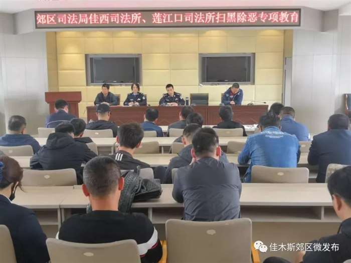 为进一步做好社区矫正工作,5月29日,郊区司法局佳西司法所、莲江口司法所联合组织辖区社区矫正对象开展“扫黑除恶”警示教育活动。