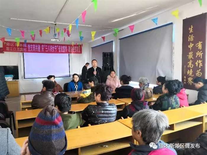 3月8日上午,为推进支部共建活动,郊区司法局机关党支部和莲江口镇万庆村党支部共同开展了 “庆三八节普法宣传,助力脱贫攻坚”主题活动。 司法局党支部及万庆村党支部向女同胞们致以节日的问候,希望女同胞们在脱贫攻坚工作中发挥“半边天”作用,展示出新时代女性"自强、自立、自尊、自爱"的品质和巾帼风采。 司法局机关党支部充分发挥自身优势,聘请佳木斯市嵩晟法律服务所为村民们进行妇女权益保护、财产继承、土地纠纷、家庭暴力等法律知识讲座。此次讲座通过案例分析、有奖问答、法律咨询等形式为村民们送去了一场别开生面的法律知识培训。村民们也自发表演了一些脍炙人口、喜闻乐见的文艺节目,用歌曲、舞蹈、三句半等节目来歌颂伟大的祖国、伟大的党和今天的美好幸福新生活。 妇女朋友们都纷纷表示,讲座涉及的法律知识非常贴近大家生活,内容通俗易懂,让大家受益匪浅,以后她们会利用法律的武器保护好自身权益。本次联谊活动为妇女们送上了节日的祝福,给“双节”增添了光彩,受到了村民的一致称赞,也更加坚定了广大妇女心向党,听党话、跟党走的信心和决心。