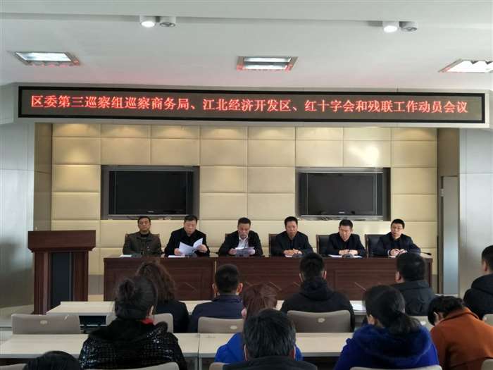 2月21日,区委第三巡察组召开巡察商务局、佳木斯江北经济开发区、区红十字会和区残联工作动员会议。巡察组成员、被巡察单位党组领导班子成员、全体机关干部参加会议。 会上,区委第三巡察组作动员讲话,区委巡察办代表区委巡察领导工作小组提出要求。第三组巡察组指出,根据区委巡察工作领导小组统一部署,区委第三巡察组将对商务局、佳木斯江北经济开发区、区红十字会和区残联开展为期一个月的巡察工作,此次巡察工作主要是聚焦党的“六项纪律”,“四个着力”和“两个责任”,紧扣“六个围绕一个加强”,紧盯重点人、重点事和重点问题,强化党组织主体责任。巡察组将紧紧依靠4个党组织开展工作,加强与单位主要同志的沟通,在工作中密切联系群众,广泛听取各方面意见,着力发现问题,实事求是地向区委巡察工作领导小组汇报巡察情况,按区委要求用好巡察成果。 区委巡察办要求:一是要牢固树立“政治意识”,认清当前全面从严治党工作形势;二是要牢固树立“大局意识”,坚决贯彻落实区委重大决策部署;三是要牢固树立“责任意识”,推进巡察工作提升成效。 会上,被巡察单位主要负责人分别作表态发言,一致表态将认真贯彻区委关于巡察工作的总体要求,增强政治巡察使命感,全面落实管党治党主体责任,坦诚接受巡察监督,发现问题立行立改,不辜负巡察组的领导同志对我们的检查监督和关心支持。