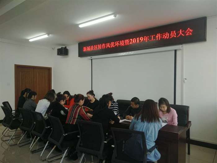 2月14日上午,新城社区组织全体工作人员召开转作风优环境暨2019年工作动员大会。 会议传达学习了全省深化机关作风整顿优化营商环境工作会议精神,全员学习了张庆伟在大会上提出的五点意见以及“重点整治的问题”“绝不容忍的工作”“大干特干的项目”“重点加强的工作”“要落实好的法规”“要明确的责任”“要持续的改革”和“要营造的范围”等内容。 会议要求,社区全体工作人员要充分认识转作风优环境的主要性、必要性和紧迫性。围绕转作风,在“转”字上去积习顽症,力戒形式主义、官僚主义,坚决摒弃“多干多错、少干少错、不干不错”的懒政怠政思想,坚持作风建设永远在路上;要围绕优化环境,在“优”字上抓提档升级,聚焦“四零” 承诺服务,既要打造风清气正的政治生态标准,又要打造一流服务与商家满意的营商环境,坚持优化环境没有最好、只有更好。 会议强调,2019年,社区全体工作人员要积极动员起来,以新姿态、新面貌、新步伐,乘中央、省市区解放思想、砥砺奋进的春风,围绕社区全盘工作和本职工作做好规划,确定目标和任务,以“钢牙啃硬骨头”的信心和决心,以“前有标兵,后有追兵”的创先争优精神和时不待我的紧迫意识担当作为,为建设“美丽、和谐、平安、幸福新城”献计出力。