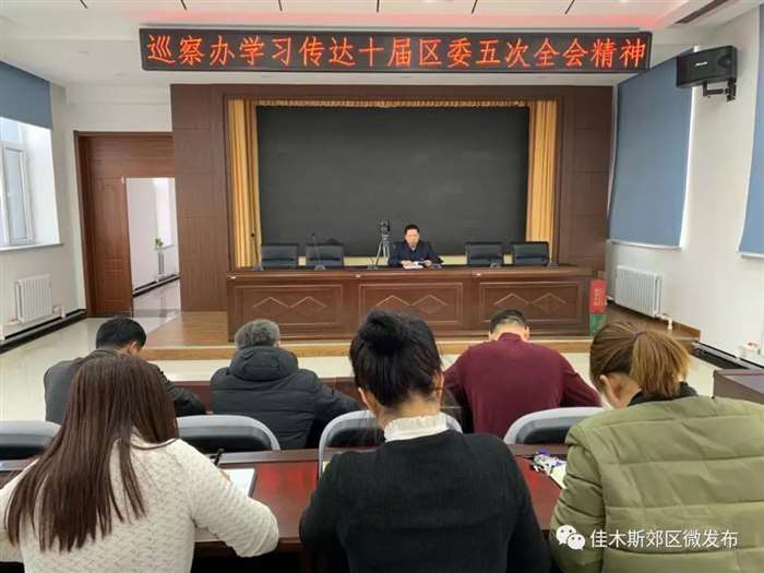 1月29日上午,郊区委十届五次全会在郊区行政中心二楼召开。1月30日下午,郊区委巡察办组织巡察机构全体工作人员深入传达学习区委十届五次全会精神。 会上,巡察办根据区委十届五次全会的议题传达了习近平总书记在深入推进东北振兴座谈会上的重要讲话和考察我省的重要指示精神、省委十二届四次全会精神、黑龙江省十三届人大三次会议精神、市委十三届五次全会精神;领学了区委书记冯甲伟在区委十届五次全会上所作的工作报告、区委常委会2018年抓党建设的工作报告、《中共佳木斯市郊区委员会贯彻落实习近平总书记在深入推进东北振兴座谈会上的重要讲话和考察黑龙江的重要指示精神推动全面振兴全方位振兴的实施方案》。 会议要求,全体巡察干部要原原本本学、组长带头学、 结合实际学,深刻领会区委书记冯甲伟在区委十届五次全会上工作报告的精神实质,认真体会冯甲伟书记在区委十届五次全会第二次全体会议上的讲话精髓要义。要牢牢把握区委确定的“四区建设”“六个突破”目标任务,围绕区委中心工作,解放思想,凝心聚力,真抓实干,奋力开创郊区全面振兴、全方位振兴新局面。 会议强调,学习是立身之本,是工作开展和创新的动力源泉,巡察干部要将区委十届五次全会报告和冯甲伟书记讲话学习好、贯彻好、落实好,切实提高政治素养和业务水平,坚定不移深化政治巡察,不断推动巡察工作高质量开展。