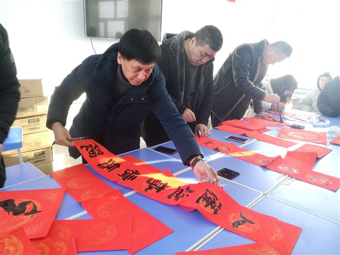 写春联、贴春联是我国春节的传统习俗,也是祥和喜庆、辞旧迎新过大年的美好象征。近日,佳木斯市、区政协、长发镇主要领导与民进佳木斯开明书画院走进长发镇新河村,为新河村村民现场创作,半天时间内共送出春联、福字约500幅。