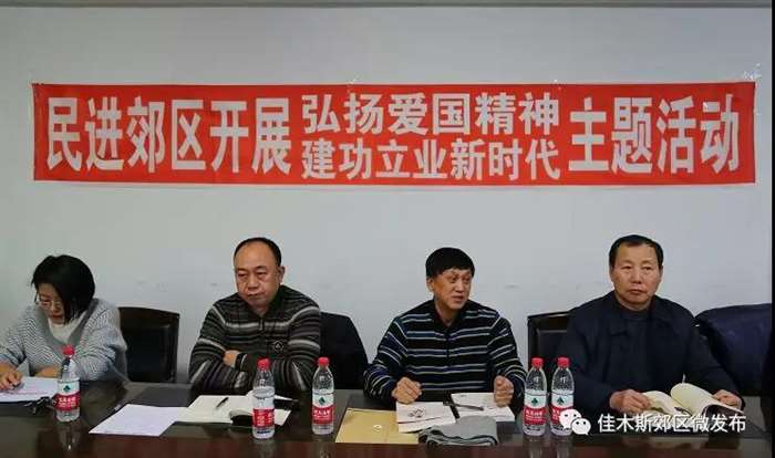 为贯彻落实省委统战部及民进省委关于转发中央统战部在党外知识分子中深入开展“弘扬爱国奋斗精神、建功立业新时”活动通知精神,12月14日下午,民进郊区委在郊区政府二楼会议室举行“弘扬爱国奋斗精神、建功立业新时代”主题座谈会,民进佳木斯主委杨松,郊区政协主席王洪军,民进市委副主委龚海峰,郊区政协副主席、民进郊区主委杨玉霞,民进郊区各位会员参加会议。 龚海峰传达了关于《民进黑龙江省委统战部印发关于在广大知识分子中开展“弘扬爱国奋斗精神、建功立业新时代”》活动实施方案的通知;传达了郊区统战部关于在广大知识分子中开展“弘扬爱国奋斗精神、建功立业新时代”具体的活动实施方案。 杨松对在广大知识分子中开展”弘扬爱国奋斗精神、建功立业新时代”主题活动进行了讲解和主题座谈。他指出,弘扬爱国奋斗精神,要从身边榜样学起,要从先进、优秀的民进会员学起;要通过民进省委副主委、中科院院士、哈工大教授邓忠全为中国载人航天事业做出突出贡献和哈尔滨第十一中学教师肖奇徒手勇接坠楼儿童的英雄事迹向民进各位会员传达爱国、爱家、爱身边的每个人,把建功立业放在岗位上,放在身边力所能及的事上。同时,他鼓励民进会员积极发现身边有奉献精神的优秀民进会员,弘扬爱国奋斗精神。 民进郊区广大知识分子和优秀企业家表示,会在平凡的岗位上做到爱岗敬业,甘于奉献、诚实守信、热心公益事业、各位会员要把爱国奋斗精神融入到新时代、新征程,融入到踏实的本职工作中,并大力宣传弘扬社会主义核心价值观、争取创造新的业绩。