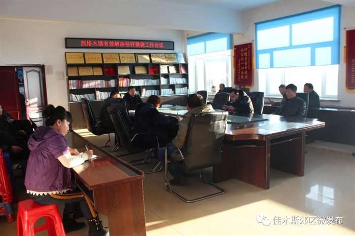 西格木镇召开秸秆禁烧工作会议 为贯彻落实省、市、区秸秆禁烧工作会议精神,12月12日,西格木镇召开秸秆禁烧工作会议,党政领导班子成员、包村领导、各村党支部书记、村主任参加会议。 会议首先传达了省市区关于秸秆禁烧的文件精神,明确了具体任务及工作安排。会议要求,一要高度重视,各村屯要将此项工作纳入工作日程,加大值班值宿力度。 二要加强巡防管护力度,通讯对讲机24小时保持畅通,防火车辆随时巡查。三要积极宣传,利用广播、微信、宣传车等媒介加强宣传力度,宣传禁烧工作和发生火点的严重后果,做到家喻户晓。四要依托上级相关政策和镇新引进的秸秆压块厂等有利条件充分做好秸秆综合利用的各方面工作,保证西格木镇不冒一处烟、不着一把火。
