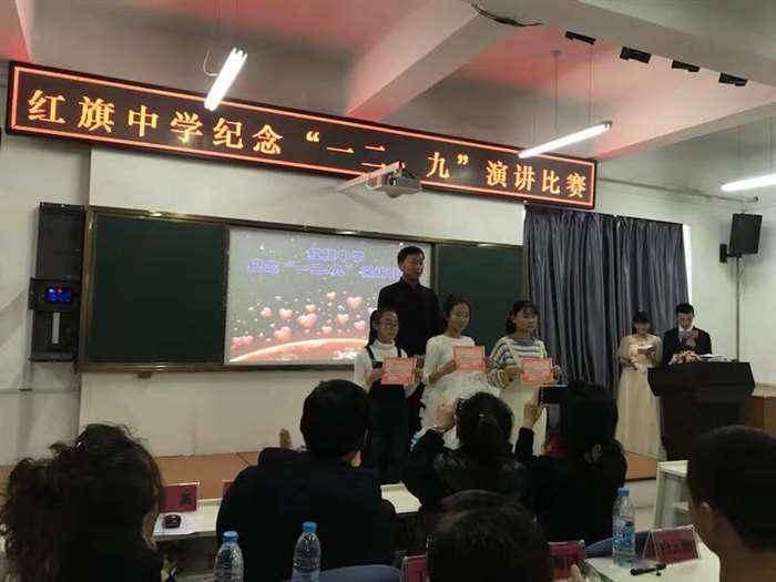 为展现当代青少年积极向上的精神风貌,弘扬“一二.九运动”中学生们的爱国精神,加强了学校文化教育及精神文明的建设,近日,红旗中学举办纪念“一二•九”演讲比赛。