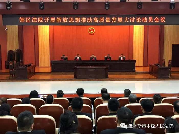 12月4日,佳木斯市郊区人民法院召开解放思想推动高质量发展大讨论动员部署会,认真贯彻落实省、市、区委及上级法院关于解放思想推动高质量发展大讨论动员部署会议精神,全院干警参加会议。 会议宣读了《佳木斯市郊区人民法院开展解放思想推动高质量发展大讨论实施方案》。会议要求,全院干警要坚持“四个围绕”和“三个聚焦”,深刻领会习近平总书记重要讲话和重要指示精神,通过解放思想推动高质量发展大讨论,全面系统深入理解领会习近平总书记重要讲话和重要指示精神。要全面学习贯彻习近平总书记在深入推进东北振兴座谈会上的重要讲话,进一步解放思想,充分发挥审判优势,为郊区发展提供有力司法保障。 会议强调,开展解放思想推动高质量发展大讨论是习近平总书记对东北地区作出的重要指示,是省委、市委、区委立足新时代新要求、面对新形势新任务作出的重要决定,对于推进全区改革、转型,走特色振兴发展之路具有极为重要的意义,对于法院如何做到司法为民,提升审判质效,让群众有更多的获得感,会议提出了更高的要求,全院干警要提高思想认识,充分认识到开展大讨论活动的重要意义,结合审判工作实际全力追求解放思想大讨论活动的实在效果,各庭室要做到精心组织、周密部署,统筹推进,努力推动各项工作再上新台阶,要在强化责任落实、营造浓厚氛围等方面下功夫,始终把这项工作紧紧抓在手上,推动解放思想不断向纵深发展。