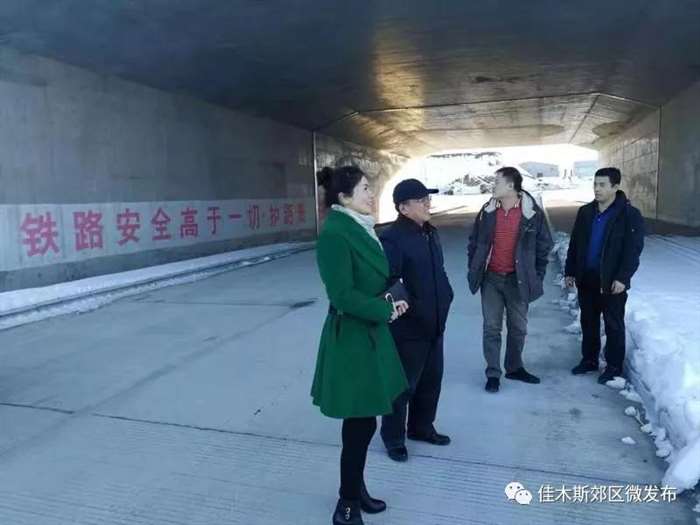 检查组听取了郊区全年护路工作汇报,观看了设在区综治中心高铁线下的视频监控实时画面;深入佳木斯西站、大来新村实地查看铁路沿线环境整治情况。在大来新村高铁上跨桥,检查组重点查看整治落实护栏加高情况,并对加高的护栏高度是否达到安全标准进行详细了解;最后,在佳木斯西站查看了附近涵洞内宣传标语及站内宣传牌匾。