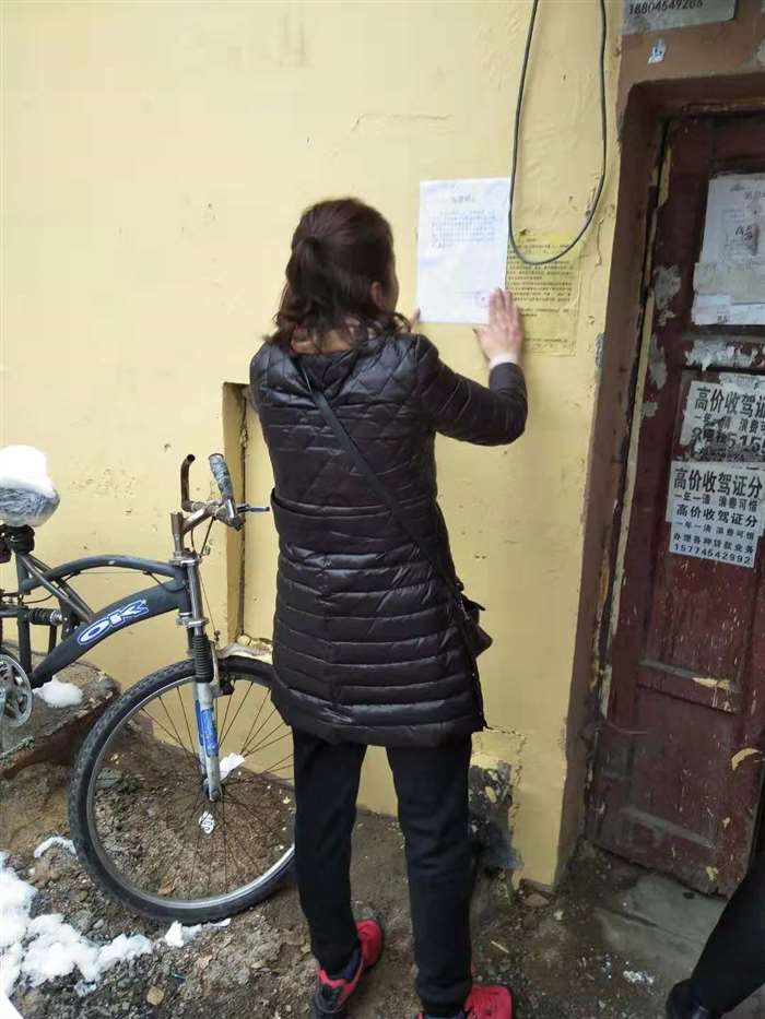 下午,红旗社区网格员分为A、B岗,入户走访排查并张贴通告,对弃管楼进行逐层排查,全力着手于警示督促工作。