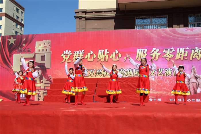 为丰富和活跃社区居民的精神文化生活,构建浓厚社区和谐氛围,增强国庆节日氛围,9月27日上午9时,万兴社区主办的“党群心贴心,服务零距离”暨万兴社区喜迎国庆文艺演出在小区内举行。