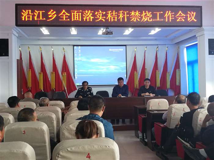 为全面落实有效解决秸秆露天焚烧工作会议精神,9月19日,沿江乡召开全面落实秸秆禁烧工作会议,将秸秆禁烧作为大气污染防治攻坚战的重要任务来抓,提早谋划、提前行动,坚决打赢秸秆禁烧攻坚战。 会上,村两委班子成员、全体包村干部,集中观看了全市禁止农作物秸秆露天焚烧攻坚战新闻发布会和《秸秆禁烧》宣传片,要求各村加大宣传力度,形成全面禁烧氛围,发挥宣传攻势,通过张贴标语、流动宣传车、大喇叭等方式切实构建起铺天盖地的秸秆禁烧宣传态势。 会议要求,要高度重视,加强组织领导,落实秸秆禁烧网格化管理责任,制定预案,建立应急灭火队伍,配备消防器材,明确各级网格职责,将监管责任落实到具体责任人、具体地块、签订责任状,加强奖惩问责力度,切实将秸秆禁烧任务落到实处;要紧盯“第一把火”,严查重处违规焚烧秸秆责任人,切实起到震慑、警示作用,确保沿江乡秸秆禁烧工作取得更大成效。