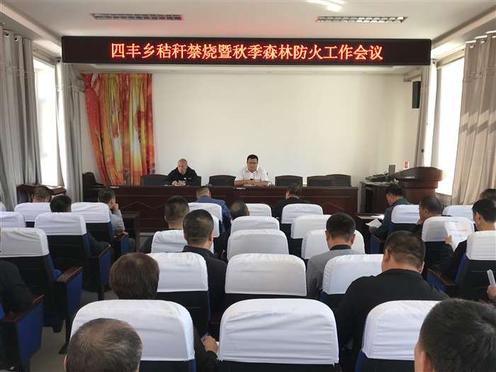 9月19日上午,四丰乡召开了2018年秸秆禁烧暨秋季森林防火工作会,包村干部、各村三职干部、农场负责人参加会议。 会议传达了《四丰乡2018年秸秆禁烧应急预案》、《四丰乡农作物秸秆禁烧和综合利用实施方案》,要求对秸秆禁烧采取网格化管理,各村三职干部和农场负责人联动起来,实行分片包保制度,责任落实到个人。会议要求,加大宣传力度,各村要充分利用宣传栏、微信群等途径发放《关于禁烧秸秆致广大农民朋友的公开信》,并通过村广播喇叭循环播放《黑龙江禁止秸秆露天焚烧工作奖惩暂行规定》,使广大农户充分认识到秸秆焚烧的危害;加强值班值宿管理,确定了每天的带班领导及值班干部,并增设流动值班查岗,确保值班人员24小时在岗在位;加大投入防火设备,积极联系有关部门,增配防火所需设备;增设扑火小队,乡政府及时抽调出16名机关干部,组成了4个循环扑火小分队,明确了带队领导,并在每个村抽调20名村民,由村书记带队组成村屯防火队,同时准备3辆防火运输车,进入临战状态,一旦发现火情,即刻奔扑火场救火。
