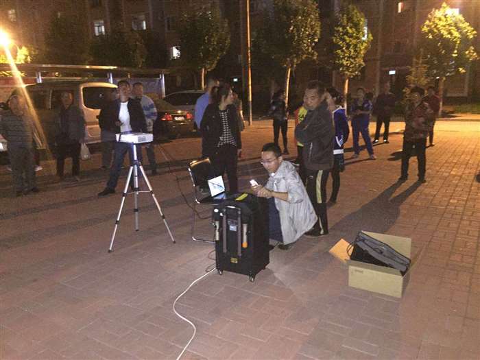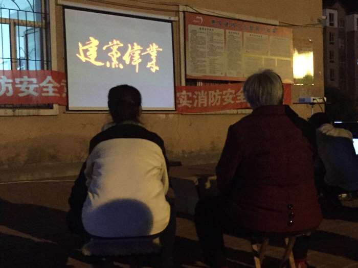 当晚,工作人员利用投影仪在辖区内小广场播放了红色经典电影《建党伟业》一部,紧张的情节、精良的制作让居民在感受电影魅力的同时,也对国防基本知识有了进一步的了解和掌握,增强了大家的全民国防观念,强化了公众的国家安全意识、国防意识和忧患意识。