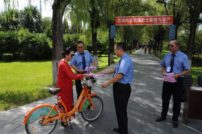 为深入贯彻《中华人民共和国英雄烈士保护法》,使人民群众充分了解检察机关英雄烈士保护公益诉讼法律监督职责,近日,郊区人民检察院开展了《英雄烈士保护法》宣传日活动。 活动当天,沐浴着清晨明亮的阳光,感受着烈士陵园庄严、肃穆的气氛,陈强检察长带领民行科和控申科干警分别到刘英俊烈士陵园和佳木斯市烈士陵园。在刘英俊烈士陵园,他们悬挂上“切实履行检察机关保护英雄烈士公益诉讼职能,保持英雄烈士纪念设施庄严、肃穆、清净的环境和氛围”的宣传条幅,设置好六块<<英雄烈士保护法>>宣传展板,陆续发放了三百张宣传单,接受现场人民群众咨询,与群众现场互动,介绍英烈保护公益诉讼的职能特点和典型案例。活动进行途中,市检察院民事行政检察处处长乔传忠来到刘英俊烈士陵园亲自宣讲英烈保护的典型案例。 陈强检察长要求民行科干警:一要提高思想认识,强化政治担当,依法维护英烈尊严;二要对于公然侵害英烈权益不法行为从严、从速调查取证,确保办案质量和效果;三要严格程序,正确运用法律,办理一批典型案件;四要各业务部门注重协调,形成合力,开展公益诉讼工作;五要加强宣传,实现办案一件、影响一片的良好社会效果。 此次宣传活动在全社会掀起了英烈保护的讨论热潮,为弘扬先烈精神、实现社会风清气正起到积极的促进作用。