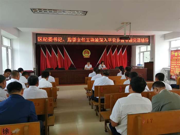 7月6日上午,区委常委、纪委书记、监察委主任王艳波深入基层党建联系点平安乡为全体乡党员干部和各村书记做了一场围绕“加强乡村党组织建设,推进全面从严治党向基层延伸,立足乡情,实施乡村振兴战略,提升群众获得感幸福感”专题党课辅导,平安乡党委书记董占财主持党课。 辅导前,王艳波与全体党员一起在党旗前庄严宣誓,重温入党誓词。在谈到“加强基层党组织建设,推进全面从严治党向基层延伸”时,王艳波指出:一要继续推进“两学一做”学习教育常态化制度化,在真学、真懂、真信、真用上下功夫、见成效;二要充分发挥村级党组织的战斗堡垒作用,新的“两委”班子要真正成为群众的贴心人、致富的带头人,在工作上要相互支持,特别是村党支部书记和村委会主任要凝成一体,形成合力,推动工作落实;三要抓好基层党风廉政建设,把党风廉政建设的各项任务细化分解到村党支部,形成乡党委一把手负总责、村党支部书记各负其责、一级抓一级、层层抓落实的责任体系。 在谈到“围绕乡村振兴战略实施,不断增强群众的获得感和幸福感”时,王艳波强调:实施乡村振兴战略是党的十九大作出的重大决策部署,是新时代“三农”工作的总抓手,要重点从四个方面推动工作落实。一要增加村集体经济收入,进一步壮大村集体经济;二要增加农户经济收入,加快发展特色农业种植,大力发展订单农业,在全乡范围内形成“公司+农户+基地”的农业生产格局;三要打赢脱贫攻坚战,确保三年内贫困户全部脱贫;四要做好民生工作,保障群众的生产生活,提高群众的满意度。