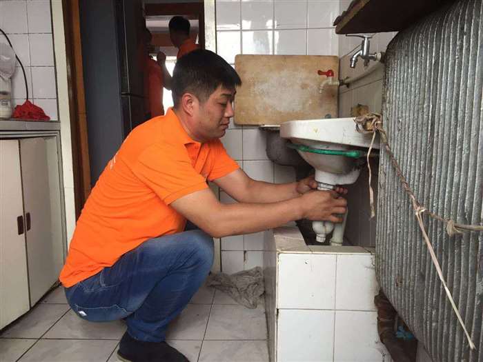 工作人员来到老党员家中,为老党员打扫卫生、收拾房屋,修理清洗下水管道,劳动结束后还亲切地与老党员聊天,了解老人的身体与生活情况,并叮嘱其保重身体。