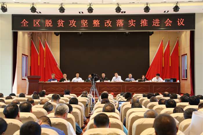 6月21日下午,郊区召开脱贫攻坚整改落实推进会议,主要任务是全面贯彻落实省脱贫攻坚督导检查反馈意见精神,动员全区上下进一步统一思想、传导压力、再鼓干劲,确保高质量打赢脱贫攻坚这场硬仗。 会议由区委副书记范继涛主持,区委书记高志军出席会议并讲话。市委脱贫攻坚专项巡察第六巡察组组长、市纪委监委第一纪检监察室主任张丹彤出席会议。区委副书记范继涛传达了省脱贫攻坚第二督导组问题反馈意见。中国农业发展银行黑龙江省分行行政副经理,桦川县悦来镇苏苏村工作队队长、第一书记吕维彬和市医保局副局长刘黎光为全体参会同志进行了精彩的业务和政策培训。郑昌辉、张建国、王艳波、孙跃武、董秋实、闵祥寒等区领导参加会议。 会议指出,要正视我区扶贫工作取得的成绩,既要充分肯定全区广大党员干部付出的心血和汗水,又要充分认识到,脱贫攻坚工作任重而道远,我们仍然不能掉以轻心,全区各级领导干部要坚决克服放松、满足、厌战等错误思想,各单位各部门主要负责人要带头转变工作作风,坚决反对扶贫领域的形式主义、官僚主义问题,切实担负起整改责任,采取超常规的手段和措施,按照习近平总书记三个“着力点”重要指示精神,牢固树立“大扶贫格局”理念,提振士气,背水一战,举全区之力取得决战全胜。 高志军强调,要坚持问题导向,切实抓好整改,聚焦识别不精准、因户施策不到位、各行业政策落实不到位、产业扶贫成效不明显、攻坚能力不足、资金使用效率不高、群众满意度不高等七个方面问题,正确处理好问题整改和工作推进的关系,对需要立行立改的加快进度,需要长期整改的尽量把工作往前赶,严格按时间节点对账销号,确保不折不扣整改到位。 高志军强调,要加强组织领导,强化责任担当,凝聚起打赢脱贫攻坚战的强大合力。一是战区负责,全员参战。11个战区,22名战区指挥要统筹好11个乡镇、98个行政村、58家帮扶单位,1800多名帮扶干部力量,确保工作真正落实到位。各乡镇党委书记要履行一把手职责,真正发挥乡村脱贫攻坚工作主体作用。要把“扶志扶智”作为重点,着力激发贫困群众自强自立精神,通过村内“大喇叭”“微信群”等形式大张旗鼓地表扬脱贫典型,推进移风易俗,树立文明新风,引导群众改变陈规陋习。在政策知晓率和群众满意度上下足功夫,提高帮扶责任人扶贫攻坚能力,建设一支懂扶贫、会帮扶、作风硬的扶贫干部队伍。二是整章建制,规范管理。要健全完善各项制度,创新工作举措,认真总结“小手拉大手”“孝善扶贫”等典型经验,并以制度的形式固定下来,规范执行,确保长期有效。要促进工作更加规范有序,区扶贫办要做好业务指导和培训,各行业部门要研究透本行业相关政策,确保贫困户在享受政策上应享尽享。组织部门要进一步加强对驻村工作队的管理、培训和考核等工作。三是强化督查,奖惩结合。全面实施区级督查、专项督查、行业督查、组织乡镇交叉互检“三督查一互检”,对于精准扶贫中认真负责、成绩突出、获得群众普遍认可的党员干部予以嘉奖,优先提拔任用,并由扶贫办和宣传部门在全区乃至全市、全省大力宣传,弘扬正能量,形成浓厚氛围;对那些脱贫成效不大、整改工作落实不力的有关单位和个人,要严格按照规定严肃问责,确保脱贫攻坚责任落实到位。四是统筹兼顾,与各项工作相结合。必须跳出脱贫看脱贫,站位全局抓脱贫,统筹推进改革发展稳定各项重点工作。要将脱贫攻坚与实施乡村振兴战略有效衔接,围绕“一村一品”、产业振兴、实施改水、改厕、改气“三大革命”等重点工作做文章,瞄准贫困人口、精准帮扶、集中发力,激发乡村发展活力,建强基层战斗堡垒,提升服务群众能力,挖掘现有人才潜能,尽快补齐民生短板,促进城乡协调发展,全面满足农民群众对美好生活的需求,全面实现农业强、农村美、农民富的乡村振兴终极目标。 各乡镇党政主要领导,行政村党组织书记;区直单位主要负责同志、主管扶贫工作的副职,驻区单位主要负责同志,社区党工委书记;区驻村工作队全体成员,区扶贫办全体干部参加会议。各乡镇全体机关干部、村委会主任通过远程直播的方式在分会场参会。