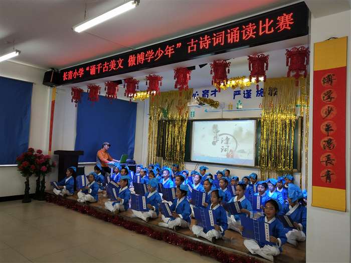 近日,长青小学举行了主题为“诵千古美文 做博学少年”的古诗词诵读比赛。