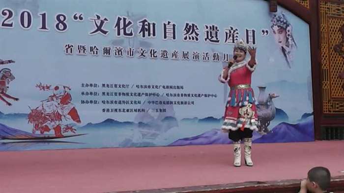 为展示非遗保护成果,当晚18:30 ,省非遗中心精心策划准备的联合国非遗项目赫哲族伊玛堪专场晚会在老道外戏台准时开演,由郊区非遗中心精心策划编排的3个精彩节目,吸引百余名观众驻足观看。古老神秘的伊玛堪说唱加以现代新颖的外在表现形式,以及赫哲族充满渔猎风情歌舞表演,给现场群众带来了一场精彩绝伦的视听盛宴!