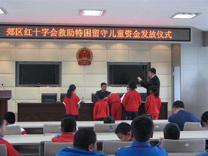 在六一儿童节来临之际,郊区红十字会联合郊区12所小学开展了“关爱救助贫困留守儿童”活动,此次活动由学校申报救助名单,再经区红十字会审核,最终确定对60名贫困留守儿童进行救助。区红十字会在上级补助1万元救助金的基础上,又匹配2万元资金用于救助60名贫困留守儿童。这项活动已连续开展了5年,让230余名贫困留守儿童家庭感受到了党和政府的温暖。