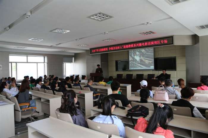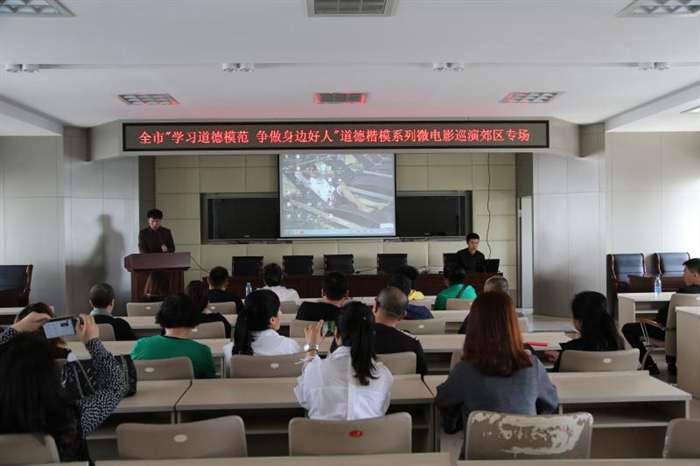 5月15日上午,郊区委文明办组织开展全市“学习道德模范 争做身边好人”道德楷模系列微电影巡演活动,社区工作人员、志愿者及群众共80人参加活动。