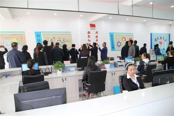 大家认真听取了红旗社区基本情况、“413”工作体系、“幸福红旗”特色党建品牌、红旗文化展示等情况介绍;了解红旗社区“以服务为本,自治为根,提升居民幸福感的工作总目标”;实地参观了一站式服务台、自治工作站、议事厅、老纪聊天吧、“幸福便民服务台”、“红旗幸福家园”、“红色驿站”党建活动室,以及包括图书室、棋牌区、乒乓球区、党建影视区、多功能活动厅等便民利民服务区设置情况。