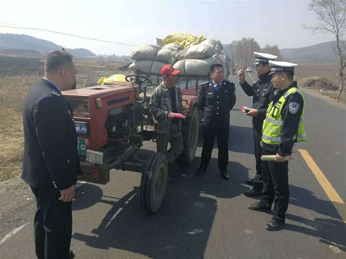 近日,郊区农机总站联合乡镇交警大队对农机安全生产隐患进行排查,并发放宣传单和宣传手册,对农机法律法规进行宣传,免费为农业机械粘贴反光标识,有效降低了农机道路交通安全隐患发生率。