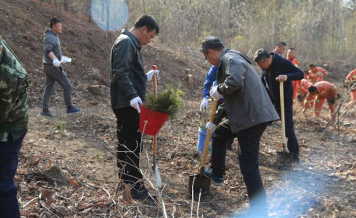 活动现场,区委、区人大、区政府、区政协四个班子领导挥锹培土,和大家一道将一株株红松树苗植入土坑,相互探讨栽植的技术要领,植树现场一片热火朝天的劳动景象,有的扶苗,有的回填新土,有的浇水护树,各个环节都有条不紊。领导和林场职工齐心协力,一个小时的时间,5000余株新栽下的红松树苗昂然挺立,用绿色组成了一道靓丽的风景。