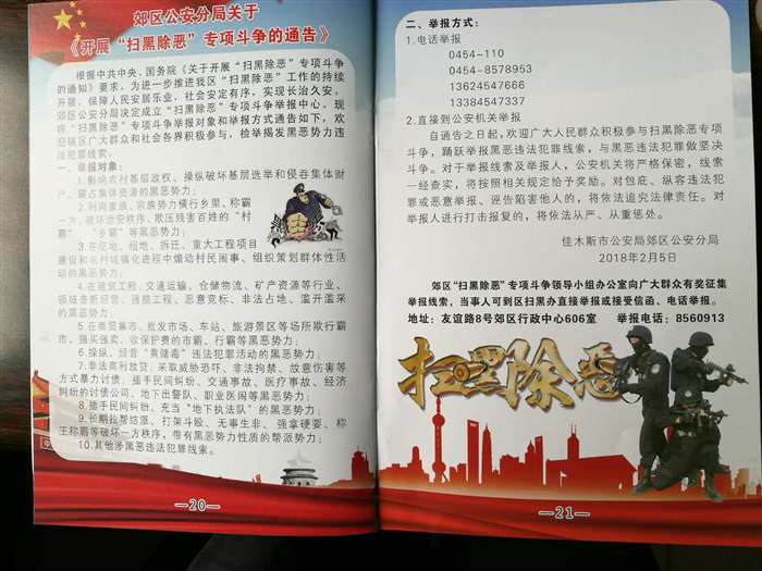 根据中共中央、国务院发出的《关于开展扫黑除恶专项斗争的通知》精神和佳木斯市委政法委《关于在全市范围内开展扫黑除恶专项斗争的通告》要求,4月16日上午,郊区扫黑办在全区范围内开展了扫黑除恶专项斗争宣传活动。