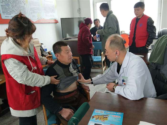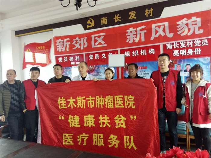 4月12日,郊区文广新局聘请市肿瘤医院、佳木斯市久久智慧养老服务中心的医护人员共同深入到所包扶的郊区长发镇南长发村,为村民进行“健康扶贫”。