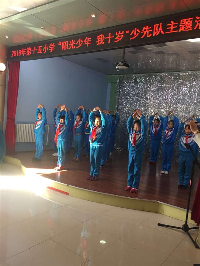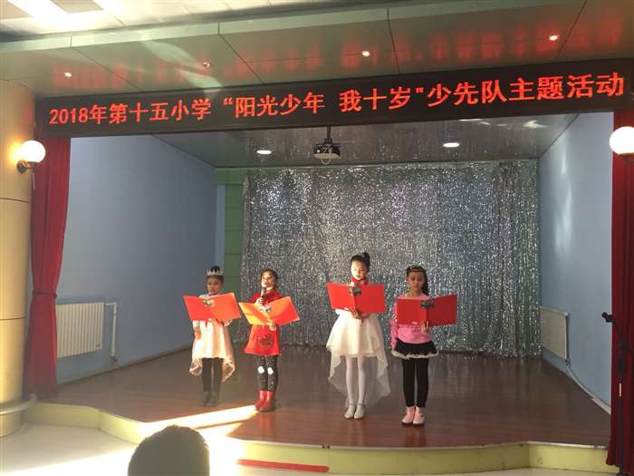 第十五小学根据学生们的年龄特点,本着“以德育人、以人为本”的教育理念,积极开展一系列少先队主题活动:一年级为“我是苗苗团员”,二年级为“光荣加入少先队”;三年级为“阳光少年我十岁”;四年级为“阳刚男孩和聪慧女孩”;五年级为“星级少年”;六年级为“我是优秀毕业生”。这些活动的形式与内容标新立异、异彩纷呈,深受学生们喜爱,孩子们从中受到教育的同时,也必将更加幸福、快乐地成长。