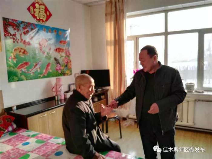 2月6日上午,郊区畜牧兽医局种畜场党支部书记李树章走访慰问了建国前老干部韩国庆老人,为他送去党组织的慰问和关怀。