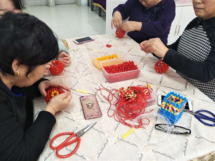 活动开始前,项目负责人郭海燕对项目进行了详细介绍,随后教授给大家红灯笼的编制方法,在志愿者的讲解和指导下,一颗颗串珠和一条条绳线在大家手中不断穿梭,随着红红火火的小灯笼编制完成,活动完满结束。