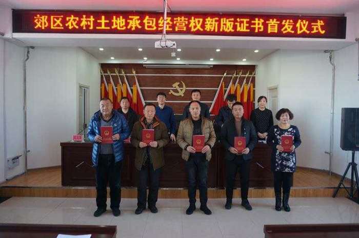 12月29日,在郊区长发镇四楼会议室举行了郊区农村土地承包经营权新版证书首发仪式。市经管总站站长焦龙吉、郊区委副书记范继涛、郊区政府副区长王俊波、各乡(镇)和区农业局相关人员出席了仪式。 仪式由郊区政府副区长王俊波主持。长发镇东胜村的20户村民代表领取了新版农村土地承包经营权证,长发镇党委书记张颜东作典型发言;郊区经管站站长刘燕对下步确权工作进行具体安排;市经管总站站长焦龙吉对郊区土地确权工作予以了肯定,并对确权工作的重要意义和下步工作的紧迫性做了进一步指示;郊区委副书记范继涛作了重要讲话。 范继涛指出:郊区的土地确权工作开展以来,郊区、乡、村各级工作人员和测绘公司经过辛苦努力,按照确权工作流程的要求基本完成了前期各项工作,目前已进入到了工作最后阶段。颁发的郊区第一批土地经营权证标志着郊区拥有承包经营权的农户土地经营权属有了保障,具有划时代的意义。 范继涛要求:各乡镇及确权工作领导小组成员单位要进一步提高对土地确权工作的认识,突出重点、加快推进。要分类指导,加快颁证工作进度,妥善处理历史遗留问题,保证农村稳定。按照全省农村土地承包经营权确权登记颁证工作攻坚年的要求,全面完成郊区确权颁证任务。 仪式后,与会人员参观学习了长发镇东胜村土地确权档案。