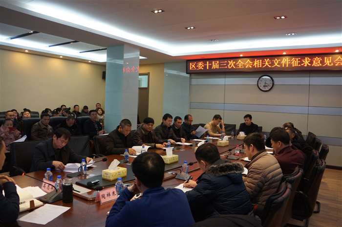 12月17日,高志军利用一整天的时间,分别主持召开了郊区党政班子成员、郊区直部门负责人、企业家代表、离退休老干部、民主党派代表、乡镇党委书记、社区指导办主任和社区党工委书记等不同层面人员参加的3个区委十届三次全会相关文件征求意见会议,就《区委十届三次全体(扩大)会议工作报告(征求意见稿)》和《关于深入学习宣传贯彻党的十九大精神全力践行习近平新时代中国特色社会主义思想奋力谱写现代化强区壮丽新篇章的决定(征求意见稿)》广泛征求各界意见建议,参会人员共达150余人。 会上,《报告》和《决定》起草组有关同志分别从起草思路、结构框架、主要内容等方面就起草工作情况进行了汇报说明。参会人员直奔主题,结合工作实际,围绕发展现代农业、壮大实体经济、打造全域旅游、抓好脱贫攻坚、保障改善民生、优化发展环境、全面深化改革等方面,踊跃发言,献智献策,通过集思广益,共计征集到原汁原味的意见建议68条,其中对《报告》的意见建议49条、对《决定》的意见建议19条。 高志军对大家长期以来对郊区委工作的理解、支持和帮助表示感谢。他表示:大家对《报告》和《决定》中有关问题想得深、悟得透、说得准,提出的意见契合实际,很接地气,充满真知灼见,碰撞出了智慧火花。大家的意见建议对郊区做好下一步工作很有启发、很有帮助,郊区委将认真研究、采纳吸收,并落实到今后的工作中去。希望大家深入学习贯彻落实党的十九大精神、奋力践行习近平新时代中国特色社会主义思想,认真落实中央和省、市委全会决策部署,坚决打好“四大战役”,全力推进“五大工程”战略性升级,坚定不移地全面从严管党治党,增强区域综合实力、改善民生福祉、提升整体形象,奋力谱写新时代郊区全面振兴发展新篇章! 会后,起草组按照大家提出的意见建议,对《报告》和《决定》进行了认真的修改完善。 中共佳木斯市郊区委办公室 2017年12月17日