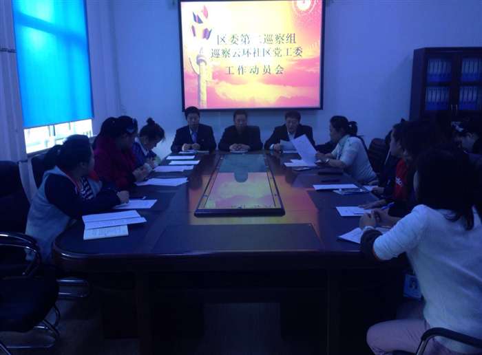 按照郊区区委巡察工作领导小组的统一部署,郊区区委第二巡察组对云环社区党工委开展为期一个半月的常规巡察工作。11月3日下午,郊区区委第二巡察组巡察云环社区党工委工作动员大会在三楼会议室召开,郊区区委巡察办主任周海和区委第二巡察组组长卢上斌就即将开展的巡察工作分别作动员讲话,云环社区党工委书记马千主持会议并作表态发言。郊区区委巡察办主任周海、区委第二巡察组组长卢上斌及巡察组成员、社区工作人员共计20人参加会议。 动员会上,卢上斌首先作动员讲话,明确提出巡察工作的总体要求、目标任务,强调此次巡察工作的重要意义作用。周海代表郊区区委巡察工作领导小组强调:开展巡察工作是推动全面从严治党向纵深发展、加强基层党风廉政建设的重要实践步骤,是巩固党的执政基础、密切党同人民群众血肉联系的现实需要,希望云环党委要把思想和行动统一到郊区区委巡察工作的安排部署上,高度重视及全力支持巡察工作,共同配合完成好此次巡察任务。巡察期间,巡察组设立专门举报电话,同时在巡察组驻地办公地点设置举报信箱。 云环社区党工委书记马千作了表态发言:社区党委将充分认识郊区区委建立巡查制度的重大意义,把思想认识统一到区委的决定上来;自觉接受监督,主动配合区委巡察组开展工作。一是从讲政治、讲大局的高度,全力支持配合巡察组开展工作;二是以高责任感、使命感加强基层党组织自身建设,进一步使社区工作规范化、制度化;三是以巡察组的巡察为动力,促使今后各项工作创新完成。会议最后还发放了测评表及调查问卷表,采取无记名的形式,客观公正地对班子成员进行测评。