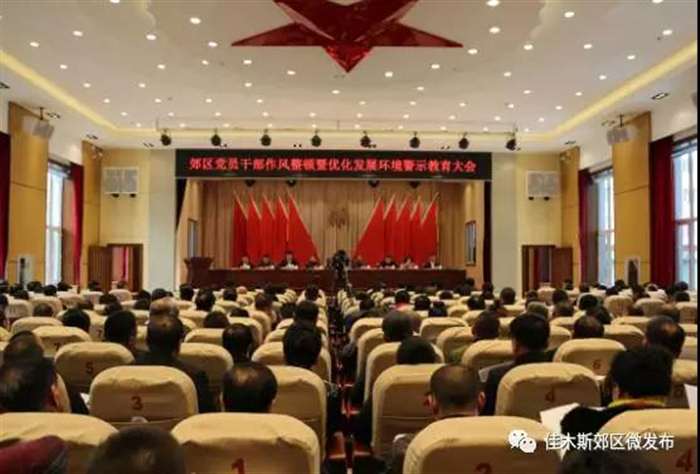 11月13日下午,郊区党员干部作风整顿暨优化发展环境警示教育大会在郊区政府二楼会议室召开。会议通报剖析了郊区作风建设的反面典型案例及基层党委巡查情况。郊区区委副书记、政府区长冯甲伟主持会议,郊区区委书记高志军同志发表讲话。 高志军指出:党的作风体现党的宗旨,关系党的形象,关系人心向背,关系党和国家的生死存亡。推动郊区经济社会全面健康发展,必须狠抓作风建设,进一步深入学习贯彻党的十九大和落实习近平总书记对我省两次重要讲话精神,按照省、市作风整顿和优化发展环境会议要求,用身边的人、身边的事警示全区党员干部,不断深化作风整顿,进一步优化发展环境,以好作风好环境促进郊区全面振兴发展。 高志军强调:全体党员干部要充分认识作风建设的重大意义,牢固树立“四个意识”,认清形势,吸取教训,切实增强作风整顿和优化发展环境的责任感和紧迫感。坚决杜绝影响发展环境方面存在的“庸、懒、浮、软、贪”等作风问题。努力践行勤学善思、求真务实、开拓创新、担当作为的“五个好作风”,倡导艰苦奋斗好作风,真正在思想上筑起拒腐防变的“钢铁长城”。 高志军强调:开展作风整顿和环境整治必须坚持问题导向,突出重点,强化措施,聚焦“三个坏把式”“五个坏作风”,以“钉钉子”精神出重拳、下狠招,持续发力,切实把问题解决到位,务求取得实效。要抓信念、抓法治,践行以人为中心服务宗旨;要抓日常、抓重点,全面提升监督管理水平;要抓引导、抓示范,发挥领导干部表率作用,全面解决党员干部作风整顿和优化发展环境中存在的突出问题。 高志军要求:各单位各部门要以高度的政治责任感和使命感,进一步加强领导、周密部署,把推进作风整顿和优化发展环境工作牢牢抓在手上,推动作风整顿和环境整治工作不断向纵深发展。要针对作风整顿和环境整治中暴露出的倾向性问题和薄弱环节,加强制度建设;坚持严抓、严管、严考核,强化督查问责;宣传推广作风建设和优化发展环境的好做法好经验,营造良好氛围,坚决打好作风建设和优化发展环境这场攻坚战。 郊区区委常委,区人大、区政府、区政协班子成员,各乡镇党政主要领导,区直单位主要负责人,驻区单位主要领导,社区党工委书记,98个行政村党组织书记,驻村第一书记,部分机关干部共254人参加了会议。同时,有2520余名党员群众通过126个远程教育终端直播的方式同步收看会议。
