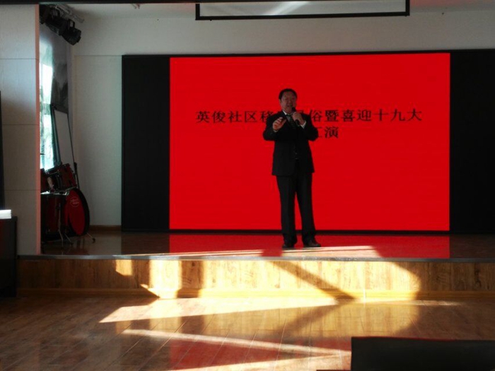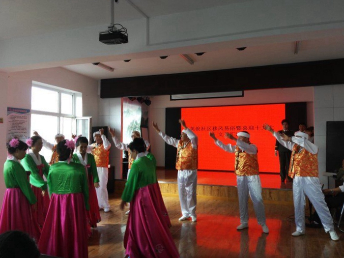 为弘扬移风易俗主旋律,扎实推进“两学一做”学习教育制度化常态化,喜迎十九大胜利召开,满足社区居民日益增长的文化需求,丰富群众精神文化生活,展示“结对子、种文化”活动成果和新时代人民群众的形象和风采,宣传正能量,激发广大党员爱党、爱国的真挚情感,9月21日,英俊社区党工委联合开心和谐艺术团共同举办了以“弘扬移风易俗、喜迎党的十九大”为主题的文艺汇演活动,为党的十九大胜利召开营造良好文化氛围。 演出以原创鲜族舞蹈《红太阳照边疆》拉开整场演出的序幕,倾情的投入,唯美的舞姿表达了大家对祖国的美好祝福。艺术团的老人们陆续演唱了《我把一生献给党》、《我的祖国》、《游击队之歌》、《夕阳红》、《再见了大别山》、《远方的书信乘风来》、《我爱祖国的蓝天》等经典红歌。原创情景剧《我们这一代人》展现了党领导下人民幸福的晚年生活。最后以原创藏族舞蹈《单玛》结束整场演出,整个活动现场气氛热烈、精彩纷呈,抒发了大家对祖国热爱之情。