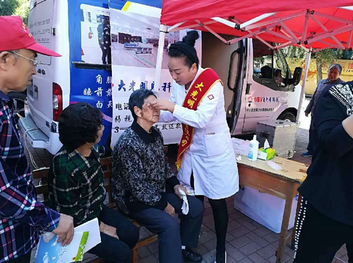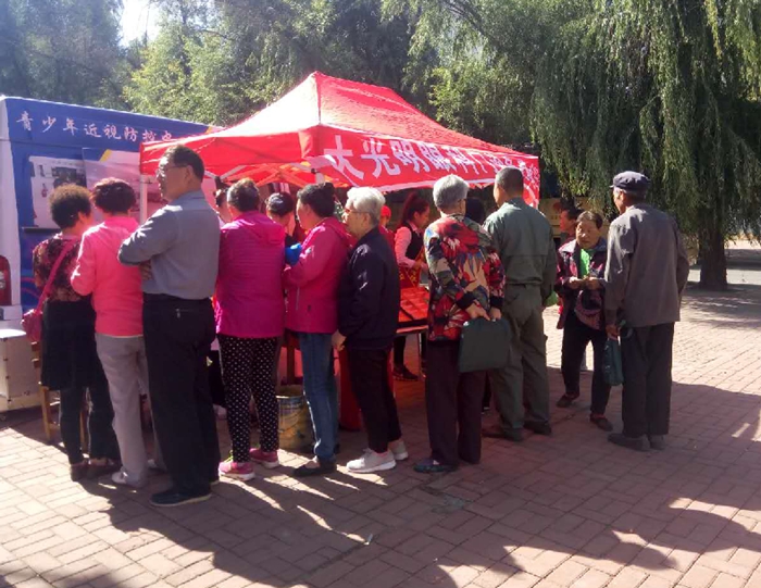 云环社区党工委深入贯彻落实“两学一做”常态化、制度化,为了喜迎党的十九大 ,9月21日上午,云环社区组织瑞德社区医院联合大光明眼镜在社区活动室门口为社区居民开展免费义诊活动。做到将为民服务落到实处,把真实惠落到老百姓的心坎上。