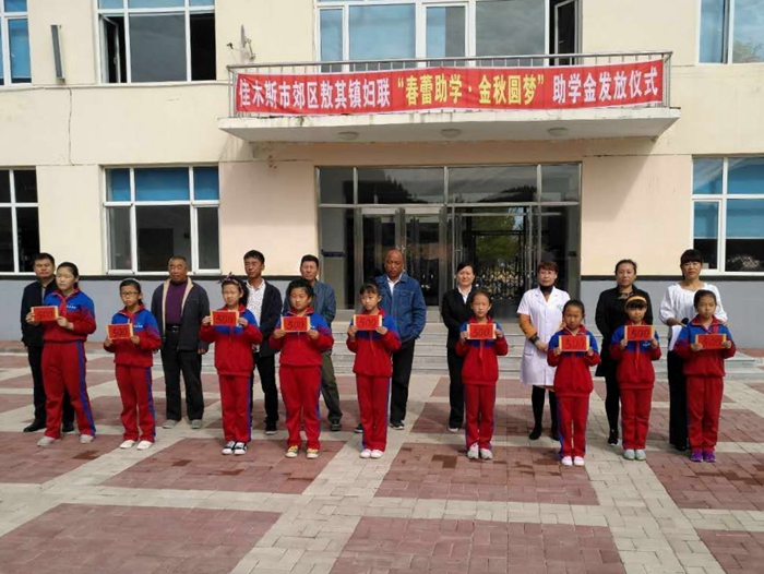 为深入贯彻省、市党代会精神,落实省委书记张庆伟同志关于“群团组织要结合自身优势扎实开展好各种助学活动”的部署和要求,9月12日,郊区敖其镇妇联在敖其赫哲小学举办了“春蕾助学•金秋圆梦”助学金发放仪式。 此次“春蕾助学•金秋圆梦”捐款活动得到了敖其镇党委的高度重视,并大力号召社会爱心单位和爱心个人积极参与春蕾助学活动,营造人人关爱“春蕾女童”的良好氛围。得到了镇机关干部、驻镇单位、驻镇企业和爱心团队的大力支持,共募集春蕾助学资金6292元,其中镇机关干部捐款3332元、骥驰拖拉机有限公司1000元,电业所500元、卫生院510元、信用社410元、傲之韵健身队540元。助学资金发放仪式上,受资助的学生们纷纷表示,将不负所望,努力学习、积极向上,争取取得更加优异的成绩、成为更加优秀的人才,回报社会、回报所有关心、爱护、呵护他们的人。将常怀感恩之心,以自己的实际行动关爱他人,把爱继续传递下去。