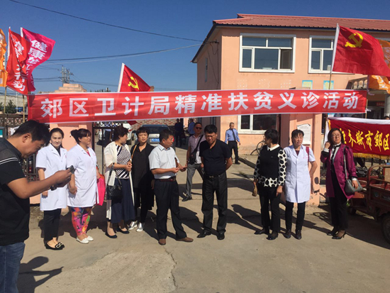 为了深入贯彻落实《中共中央国务院关于打赢脱贫攻坚战的决定》和省委、市委、区委扶贫开发工作会议精神,全面落实市委十二届六次全会精神,发扬卫生计生领导干部在脱贫攻坚战中的模范带头作用,9月7日,由郊区卫计局局长张少英带队,局领导班子、乡镇卫生院院长、局直部门负责人及郊区人民医院医生参加组成的义诊队伍对江口镇长胜村进行了精准扶贫大型义诊活动。