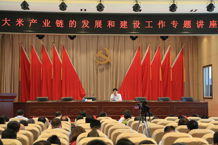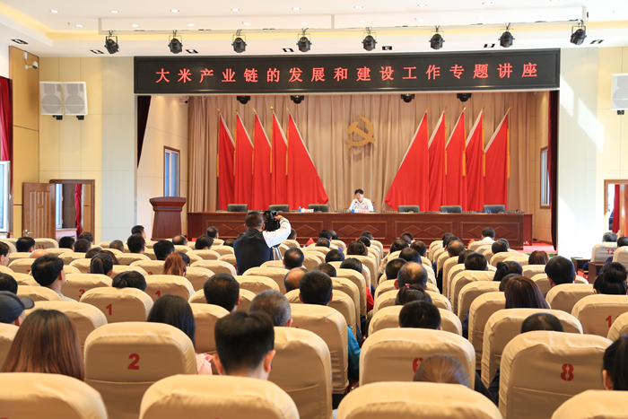 按照市委书记徐建国同志深入郊区调研时提出的“依托地缘优势,发展城郊型经济”的要求,郊区区委、区政府突出城乡结合部地缘优势,积极开发“两座金山银山”,在谋划绿色食品产业上发展做文章。2017年9月5日,邀请“中国城商联”会长、全国商业规划管理办公室主任、全国商业资产评估工作委员会主任宣春雷同志,“中国城商联”会长助理、常务副秘书长徐志刚同志,“中国城商联”理事李威同志一行3人到郊区调研考察,共同研究合作推进郊区和佳木斯大米产业发展,并于9月6日上午,请宣春雷会长为郊区机关干部进行了一次题为《大米产业链的发展和建设工作》专题讲座。 宣春雷从建立国家级大米产业展览交易基地和黑龙江大米产权交易平台以及建成以后对佳木斯发展的重大意义入手,深入浅出地分析了当前黑龙江大米优势和影响力,引导全区广大党员干部切实提高认识、转变观念,充分认清我们佳木斯大米这个最大的优势资源,进一步梳理资源、引进资源、做好资源对接,着力破解信息和资本不对称这两个重大问题,建立全国大米产地交易基地和产权交易平台,把全省的优质大米和大米加工企业进行整合,实现稻米生产、加工、包装、物流、销售的全程统一。同时注重开发多种功能性产品,全面融入商业、文化、金融、科技等多种元素,努力推进黑龙江大米进入工业4.0时代,成为享誉全国及至全球的知名品牌,进而拉动郊区乃至佳木斯市和黑龙江省经济快速健康发展。 专题讲座由区委副书记范继涛同志主持,区四个班子领导、各乡镇和区直部门班子成员、社区党工委书记及部分食品加工企业负责人共计240余人参加了会议。