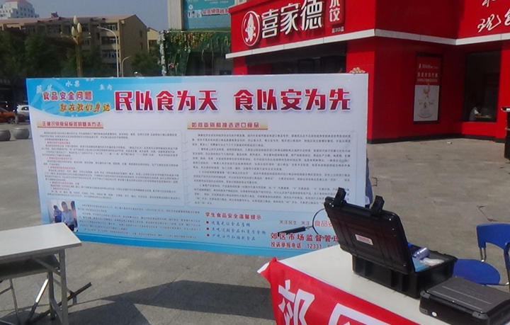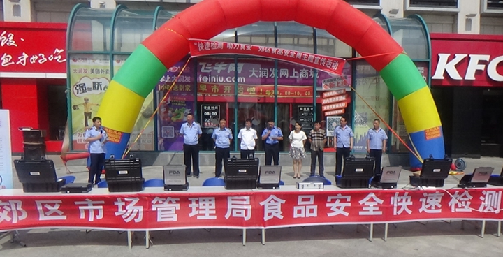 7月14日,郊区市场监督管理局会同创建食品安全城成员单位所有乡镇、社区以及辖区内5家具有代表性的生产企业在万新街大润发门口举办以“快速检测,助力食安”为主题的食品安全宣传周活动。 此次活动旨在完善食品安全监管体制,加强统一性、权威性,推动各级食品安全监管部门不断强化监管执法,加强政府信息公开。按照此次活动的主题,郊区市场监督管理局在大润发门口设立了快速检测服务站,致力于通过为群众提供免费快速检测服务的方式,给广大消费者提供一个放心满意的食品消费环境。 活动由郊区食安办副主任、区市场监督管理局副局长曲启波同志以及成员单位代表分别进行了发言,并由曲启波同志宣布了郊区“食品安全宣传周”活动正式开始。随后,快速检测服务站开始检测活动。 本次活动共计设置宣传展板10余张,发放宣传单百余份,为消费者免费检测30余批次,检测结果均为合格。 郊区市场监督管理局希望通过此次活动,使得广大食品生产经营者能够筑牢食品安全道德防线,自觉守法诚信经营,同时希望社会各界和广大群众积极主动地参与到食品安全工作中来,进一步提高食品安全维权意识,加强食品安全社会监督,大力营造人人关心和维护食品安全的良好氛围,共同创造更加幸福美好的生活。
