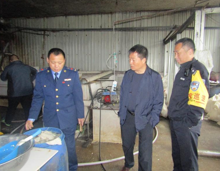 为严厉打击危害人民群众生命健康的违法生产经营活动,切实净化食品市场环境,维护老百姓的餐桌安全,郊区深入开展打击制售假冒伪劣食品专项整治行动,各执法部门加大力度,统一行动,联合执法,确保打击常态化,对违法违规食品生产企业产生强大的威慑作用。2017年6月2日至7日,经过工作人员几天的蹲坑守后、明察暗访,掌握确切线索后,由郊区政法委牵头,会同区市场监督管理局、区公安分局、区文广新局等单位,共派出执法人员20人、行政执法车辆4台,对辖区不法黑加工点进行取缔的联合执法行动。 在联合执法行动中,一举取缔了位于长青乡前进村加工豆腐泡的豆制品厂、前进村加工酸菜制品的“黑”加工点和位于西区社区动迁区内的生产加工实蛋的鹏博食品加工厂,对三家存在严重食品安全隐患的“黑”加工点进行了依法取缔。 长青乡前进村豆制品厂、酸菜制品厂加工点均属无证无照经营,西区社区鹏博食品加工厂有照无证,执法人员进入加工点进行现场检查时,这三处地点空气中弥漫着令人作呕的味道,环境十分恶劣,生产条件不符合食品生产加工要求。对此,市场监督管理局依据《中华人民共和国食品安全法》的有关规定,执法人员当即依法查封了三处黑加工窝点,并对黑加工点的生产加工工具及生产加工所用原材料打浆机1台、豆油分离器1台、豆泡切割机1台、电机2台、原料油3桶(约120斤)、黄豆41袋(约4100斤)、食用氯化镁2袋进行封存,依法查扣全部涉案物品货值约10万元,铲除了三处严重威胁群众餐桌安全、危害群众身心健康的黑作坊,对各类制售假冒伪劣食品企业和商户产生了震慑作用。