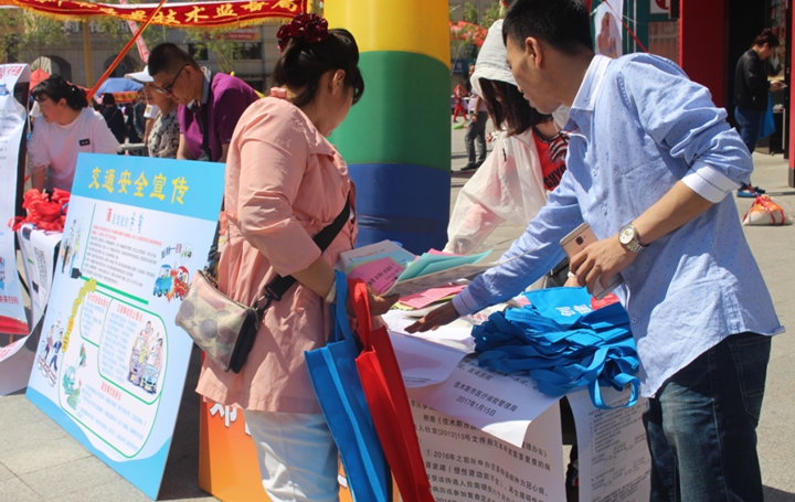 上午9时,在广场两侧宣传桌整齐排列,市农委、市卫计委、市司法局、市国土资源局、区检察院、区法院、区司法局、区安监局、区消防大队、区卫计局、区农业局、区扶贫办、区新农合办、区低保办14家单位向群众免费发放药品、义务为群众诊疗、发放宣传单,解答群众提问。最聚人气的地方是位于广场北侧的“扫一扫有惊喜”的公众号扫码区,许多群众围在“法治佳木斯”和“大美郊区”两处公众号二维码标牌前,拿着手机扫码关注这两个反映市、区两级政法部门工作动态的公众号,工作人员正忙着对每一位扫码成功者发放小礼品。
