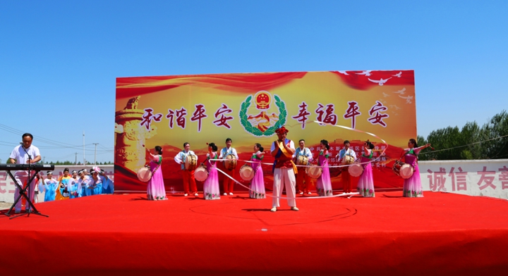 上午10时,一台由综治成员单位、政法部门一线工作者和社区群众奉献的文艺演出开始了。一首首来自群众原创或改编,歌颂郊区发展,歌颂平安建设的舞蹈、歌曲、曲艺、京剧选段充满了真诚和朴实,京东大鼓《郊区似画卷》、快板《说法》、歌舞《美丽的郊区》、三句半《幸福平安》以及京剧唱段《护路联防写春秋》等节目,吸引了台下观众,赢得阵阵掌声。主持人利用在节目间隙提出了有关婚姻法、物权法、治安管理处罚法和生活安全常识类30道有奖问答题,台下群众积极抢答,现场互动,气氛活跃。