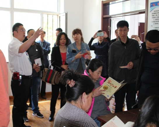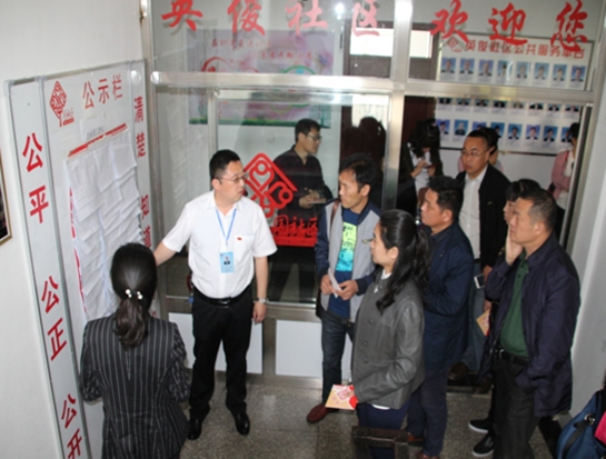 5月15日上午,市委组织部城市科科长袁洪涛等领导及全市县社区党组织书记培训班共计150余人,分3批次到英俊社区观摩指导。