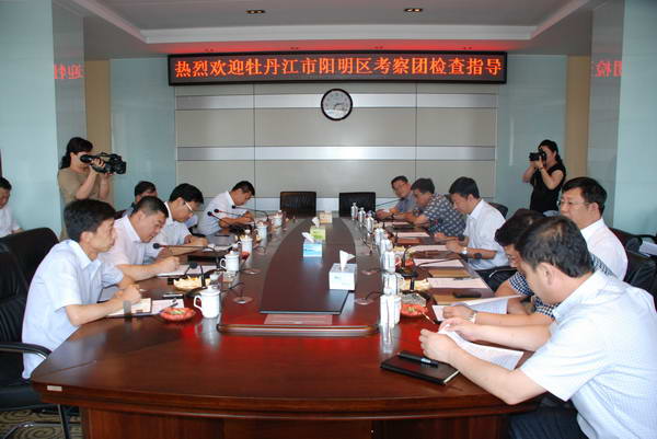 由牡丹江市阳明区委书记姜英波同志、区委副书记、政府区长赵会平同志带队的党政考察团一行17人,于7月4日中午抵达我区进行交流考察。区委邱书记和阳明区委姜书记分别介绍了本区的经济社会发展情况和现行管理体制,并就如何加快区域经济发展进行了深入探讨交流。邱书记指出,阳明区发展占位高,超前意识强、目光高远,发展理念和发展经验令我们耳目一新,在城区发展、统筹城乡发展、有机食品生产等方面的经验和近年来经济社会的发展所取得的丰硕成果都值得我们认真学习和借鉴。真诚的希望阳明区的各位领导多到郊区考察作客,加强交流,加深了解,增进友谊,共同发展。我区四个班子主要领导、相关区领导及区委办、政府办、财政、发改、农业等部门领导参加了座谈会。