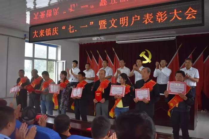 6月27日,大来镇召开了庆“七一”暨文明户表彰大会,全体班子成员、机关干部、全镇优秀共产党员、村级“文明户”、各村书记、村长及驻镇单位负责人参加会议。