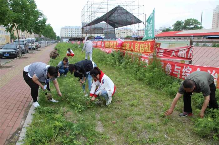 为创建美好、和谐、文明的居住环境,近日,五一社区工作人员与党员志愿者对小区楼道、广场绿化杂草进行了卫生集中清理活动。他们积极发挥奉献精神,认真地把广场两侧绿化丛生的杂草铲除,把楼道里的杂物垃圾清理干净。通过环境卫生清理,提升了社区的环境质量,增强了居民群众的文明和环卫意识。